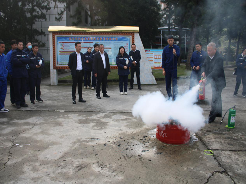 隨后,現(xiàn)場模擬火情,組織模擬消防逃生演練,現(xiàn)場演示講解干粉、二氧化碳和水基滅火器的使用方法和注意事項(xiàng)。