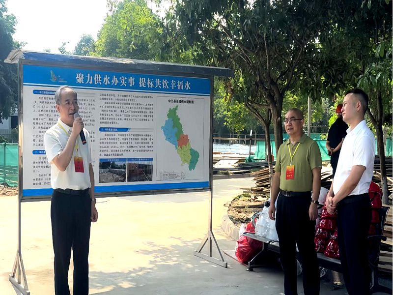 視察中,縣水利局副局長(zhǎng)陳輝詳細(xì)介紹了中江縣供水現(xiàn)狀,重點(diǎn)匯報(bào)了鄉(xiāng)村供水保障項(xiàng)目的進(jìn)度、階段性成效等。隨后,中江公司黨支部書(shū)記、董事長(zhǎng)、總經(jīng)理朱禹圍繞繼光水廠(chǎng)的供水覆蓋范圍、日常供水能力等基本情況,以及清水池?cái)U(kuò)建在提升供水安全及穩(wěn)定性、應(yīng)對(duì)用水高峰及應(yīng)急方面的核心作用作了匯報(bào),部分代表提出了合理化建議。